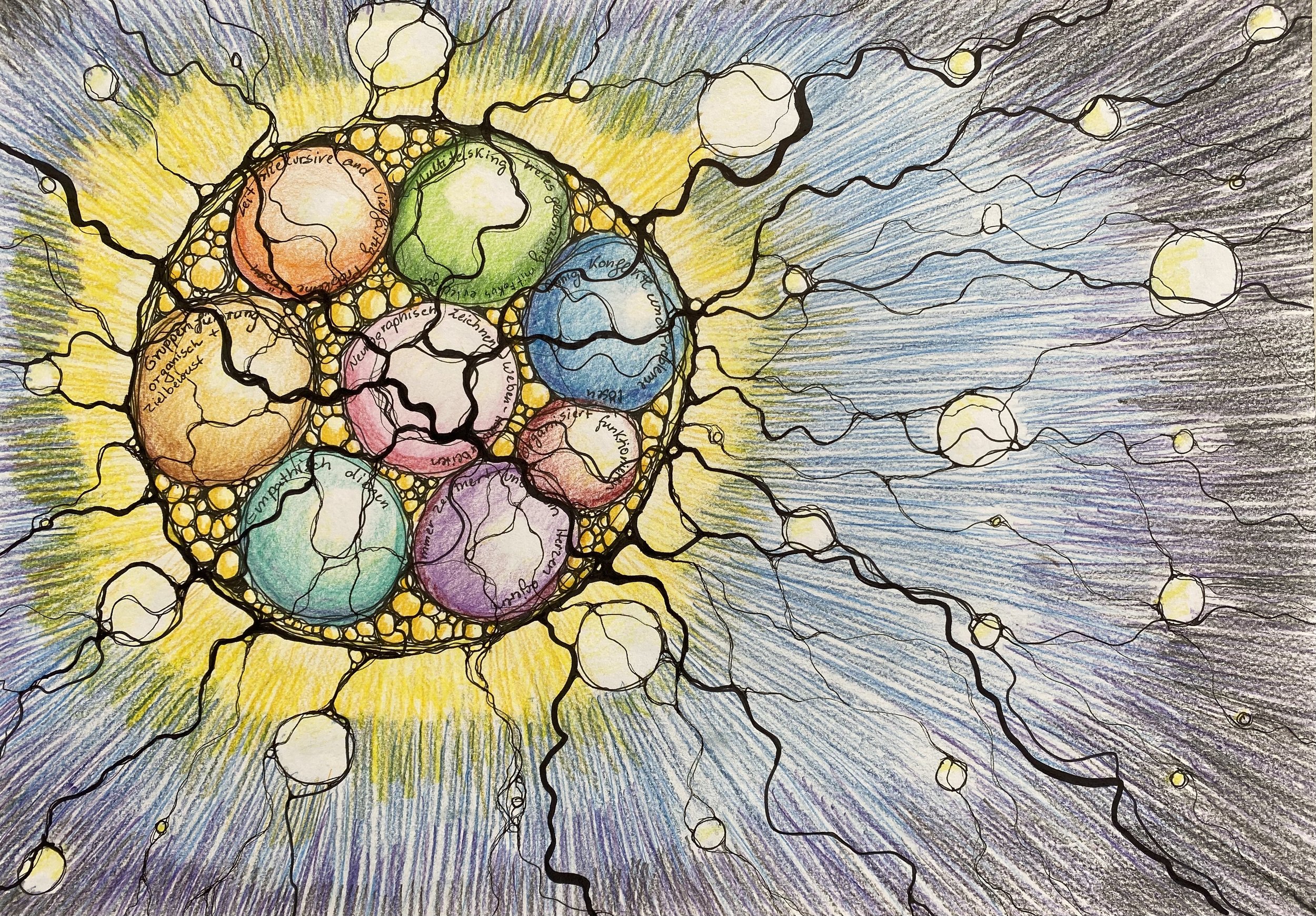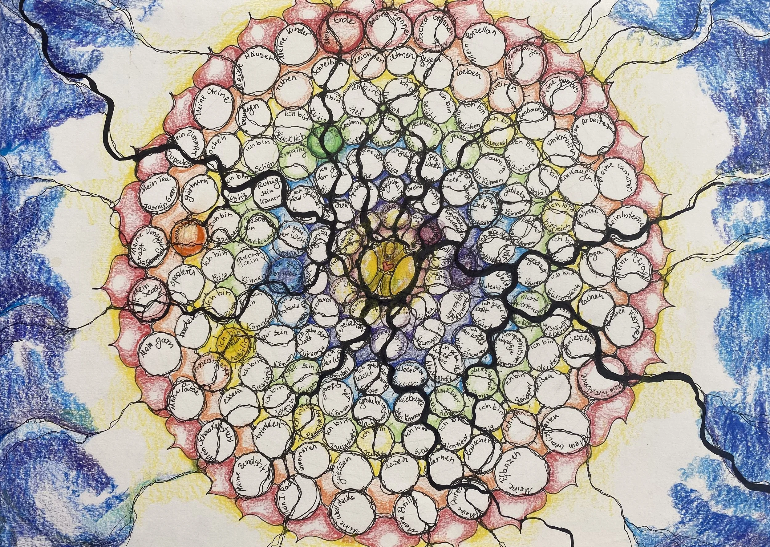 The benefits of exploring your life through guided drawing with this graphic technique are very subtle. You re-new the electric flow through your nervous system and open new energy channels.